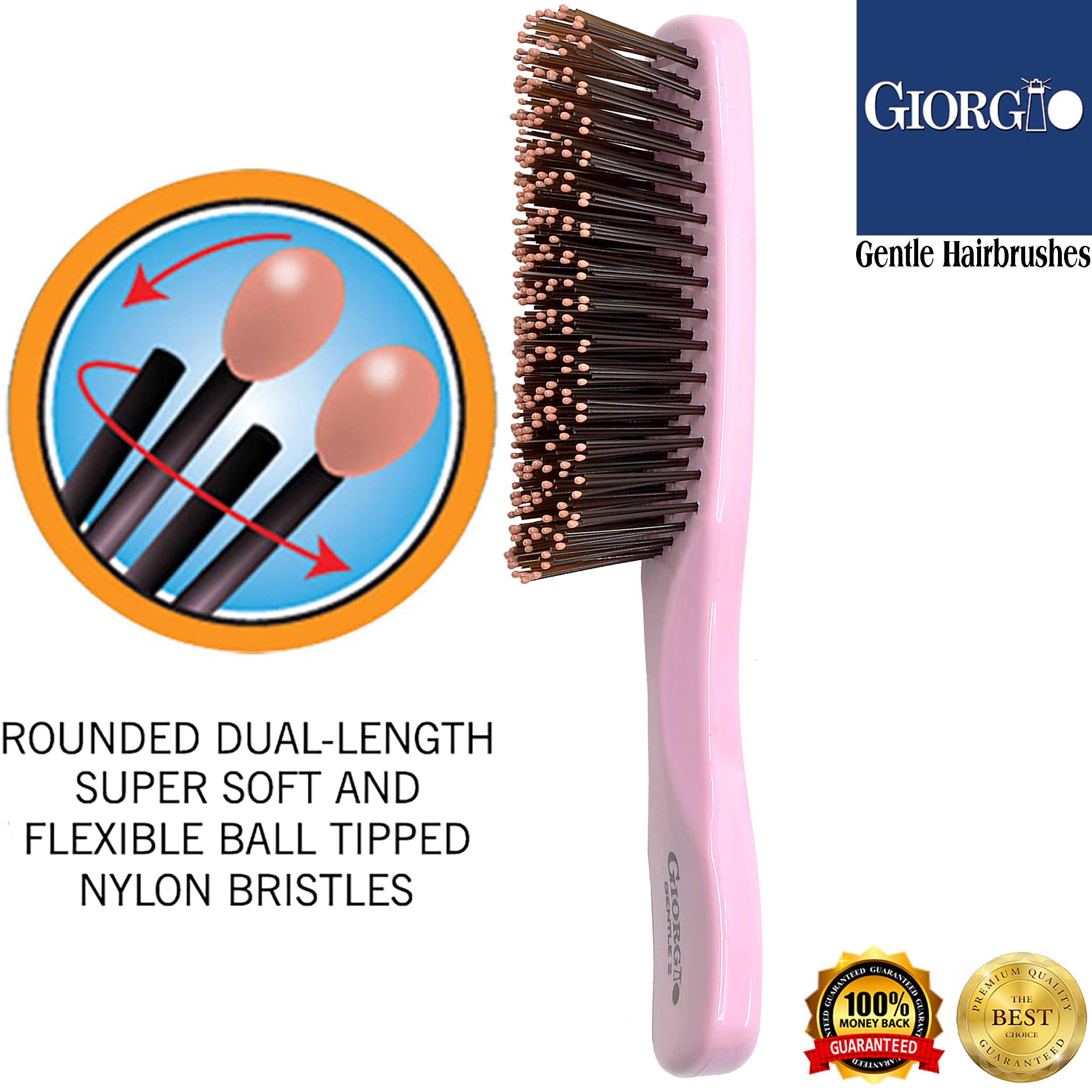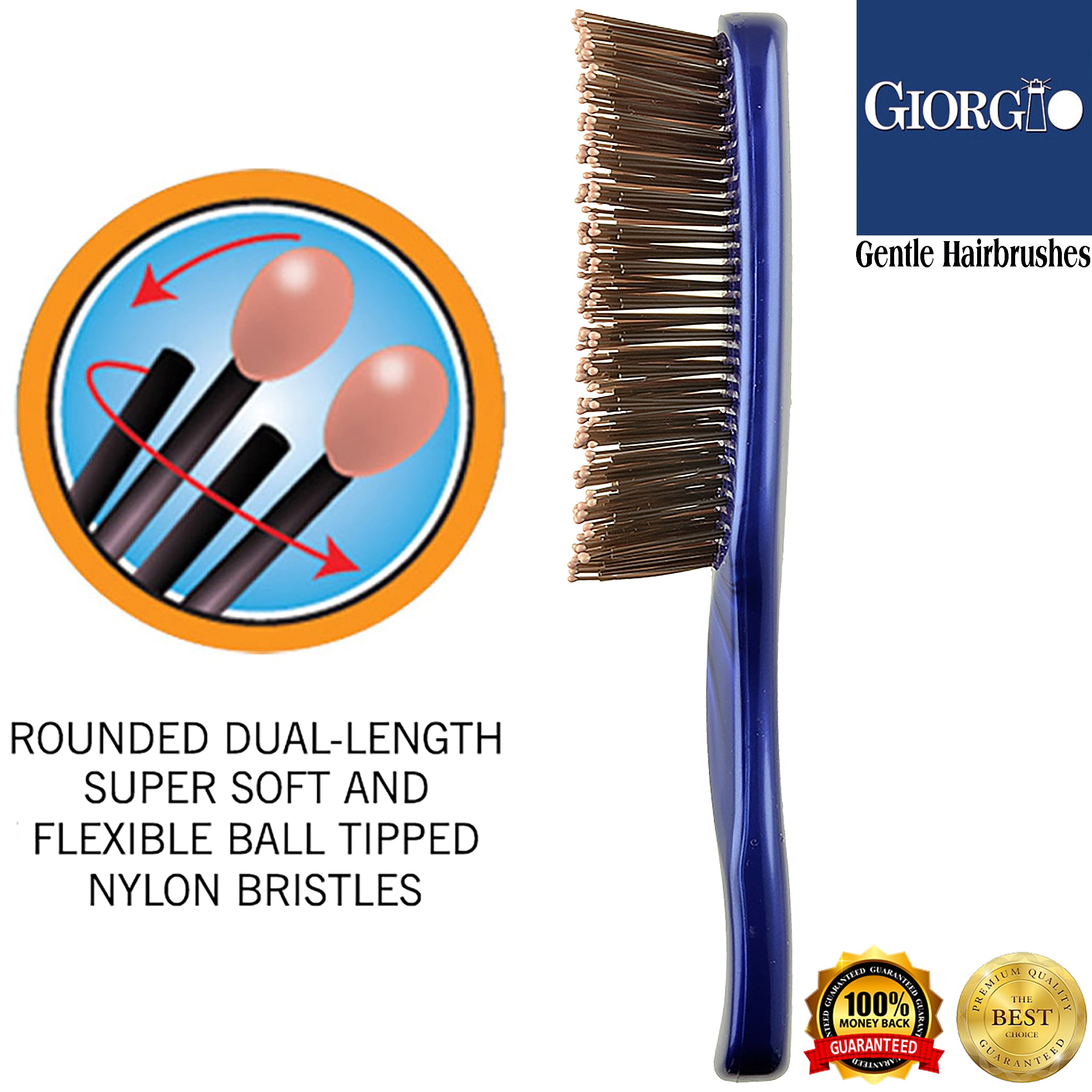 - Super soft and flexible ball-tipped nylon bristle hair brushes for women and hair brush for men. Dimensional design dual-length rounded tip bristles for a gentle touch scalp brush and massager that detangles while stimulating promoting shiny, healthy hair.