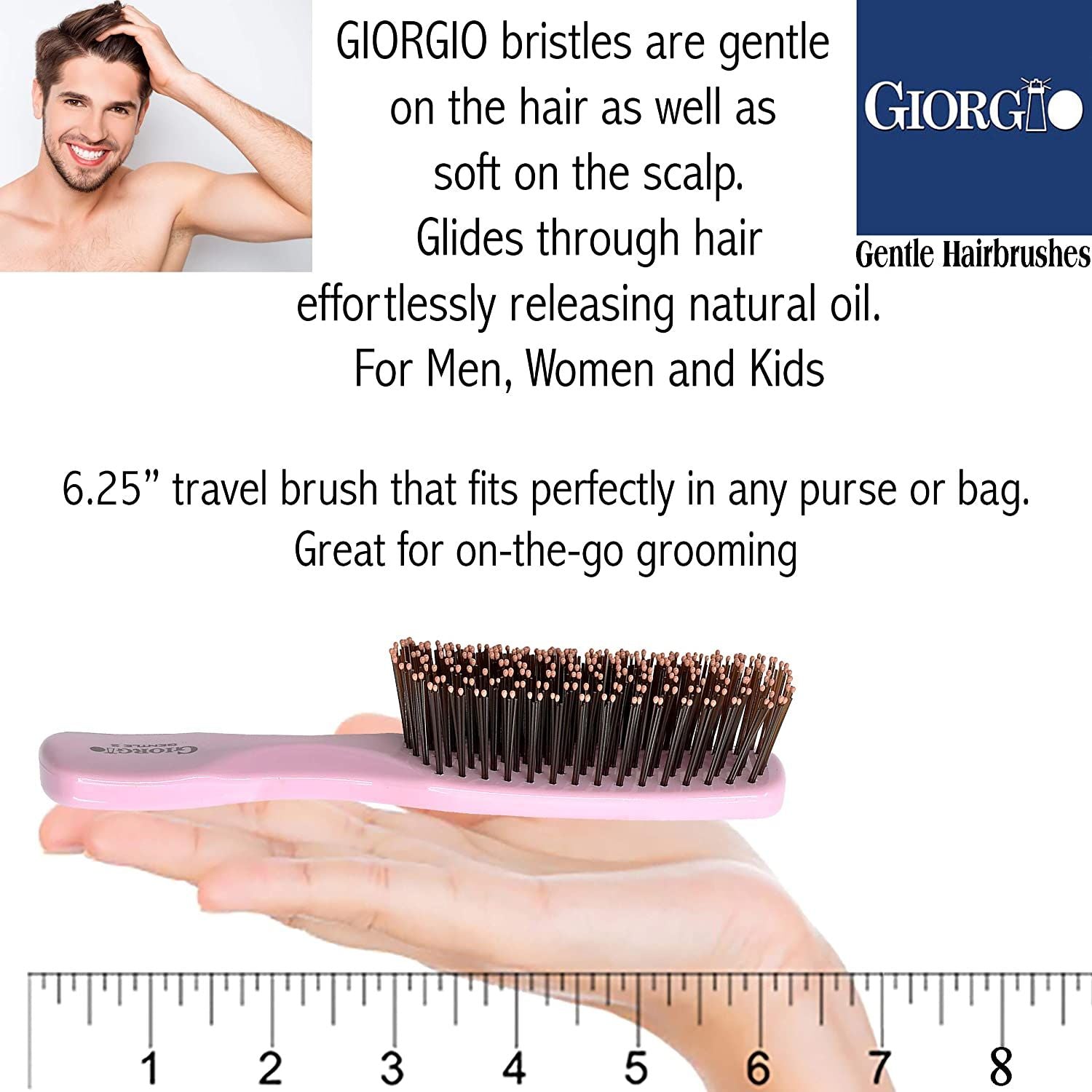 - Ergonomic square design with a comfortable handle for better grip. Made of cellulose acetate, an environmentally friendly material. The Giorgio brushes for hair can be used for of all hair lengths including straight, curly, fine, medium, and thick hair.
