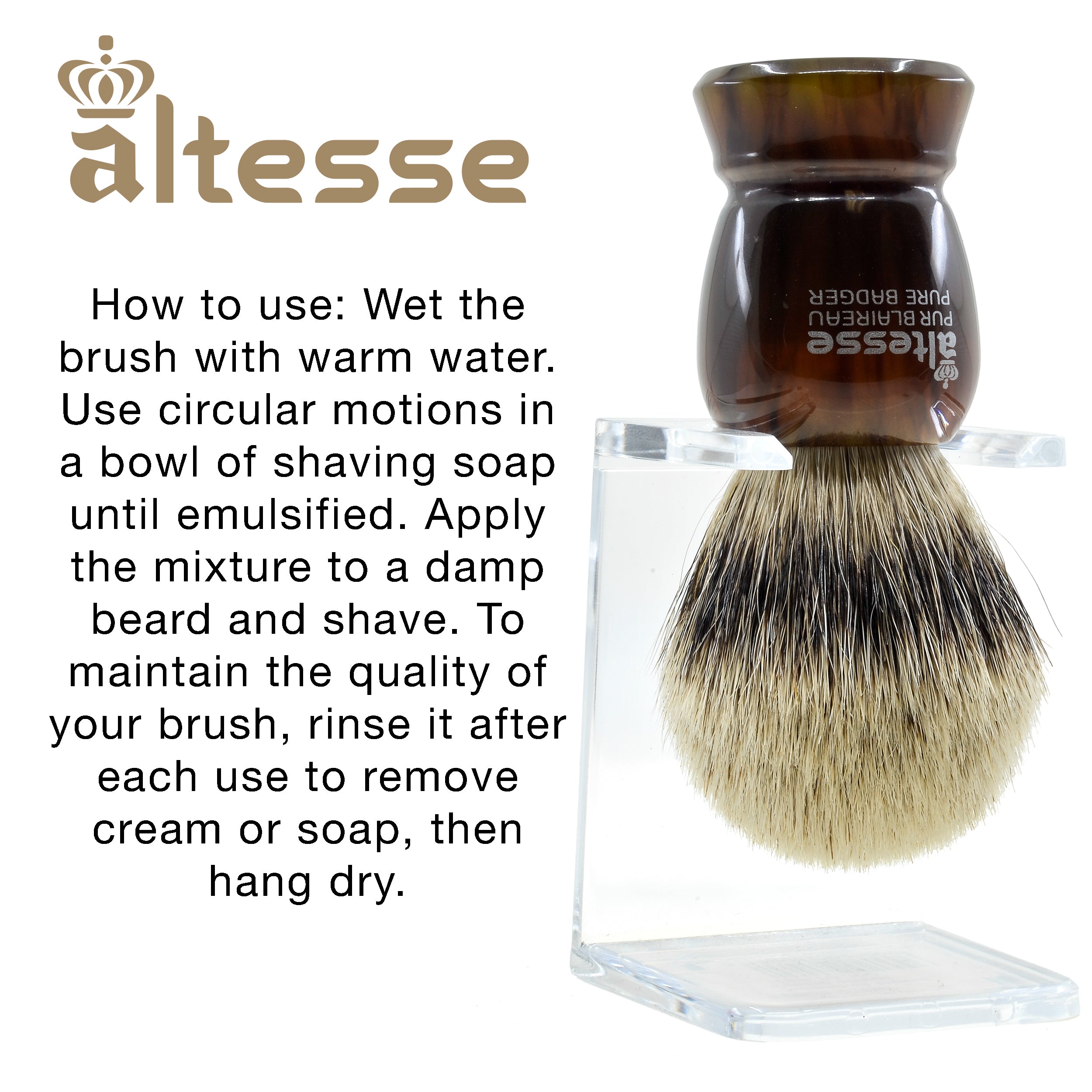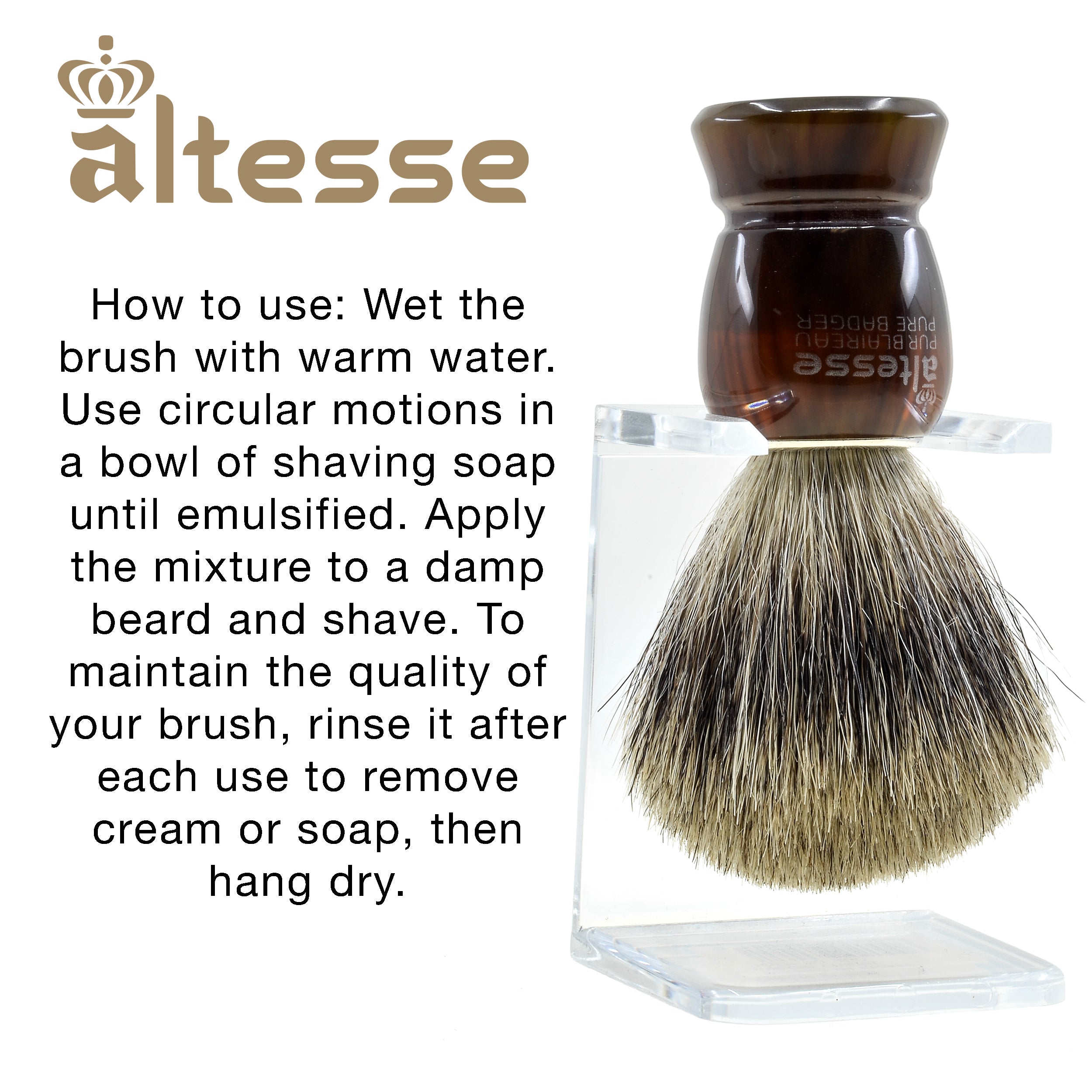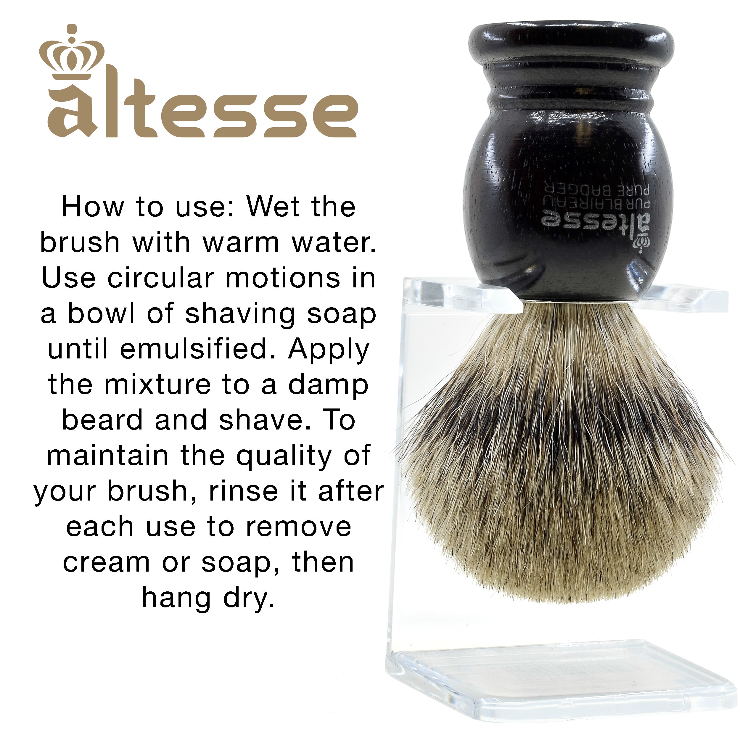 - How to use: Wet the brush with warm water. Use circular motions in a bowl of shaving soap until emulsified. Apply the mixture to a damp beard and shave. To maintain the quality of your brush, rinse it after each use to remove cream or soap, then hang dry
