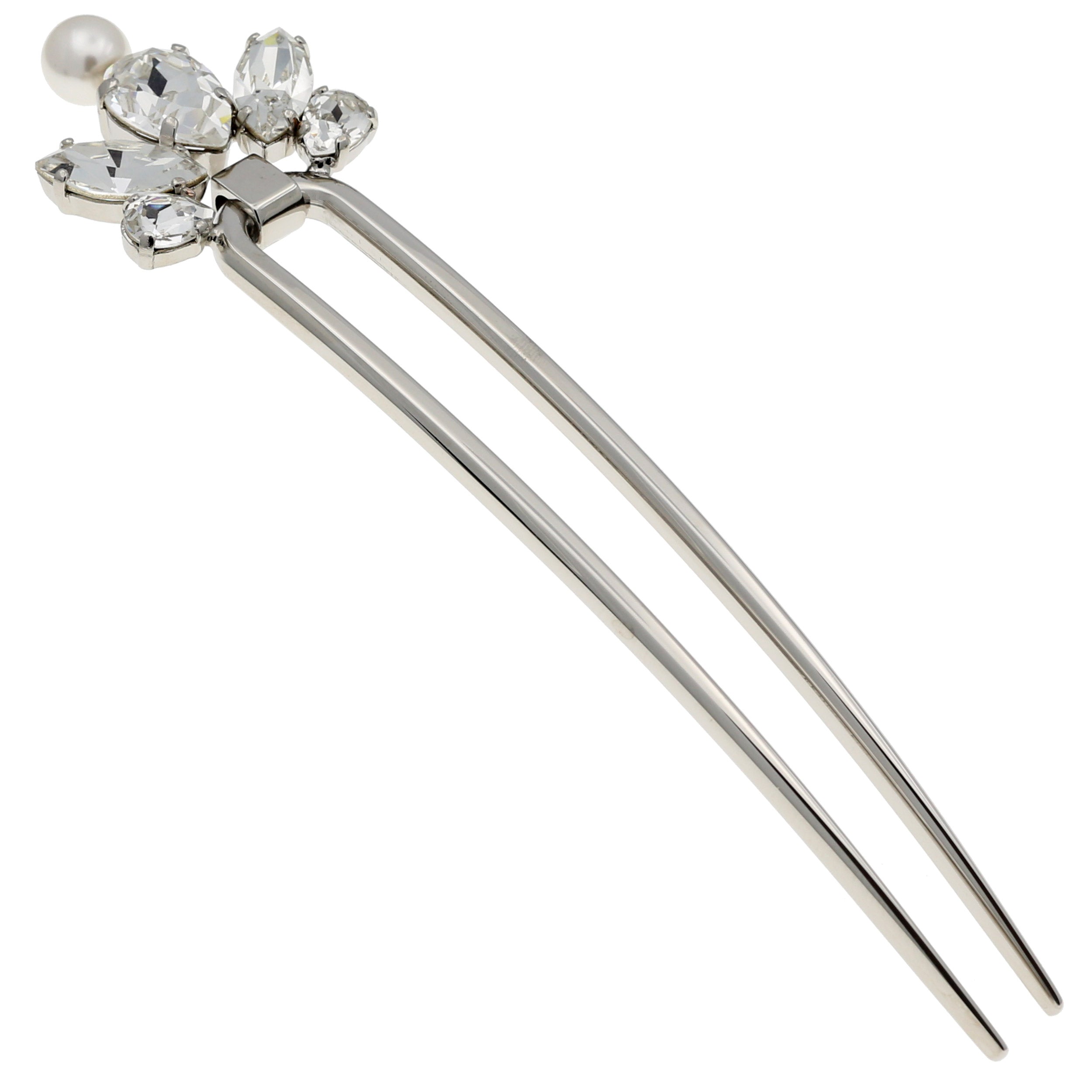 - Gia Alessandra GA261 (4.75") Large Italian Handmade Silver French Twist Stick Pins with White Swarovski Crystals & Pearls. Never have a bad hair day. Hair fashion beauty accessory for women. Ladies barrettes clamps with super strong Plastic Metal-Free Closure for thick or fine, long and shorter hair. Perfect for creating easy hairstyles; partial quick updo or bun full updos, holding your hair securely and tightly in place without any discomfort.