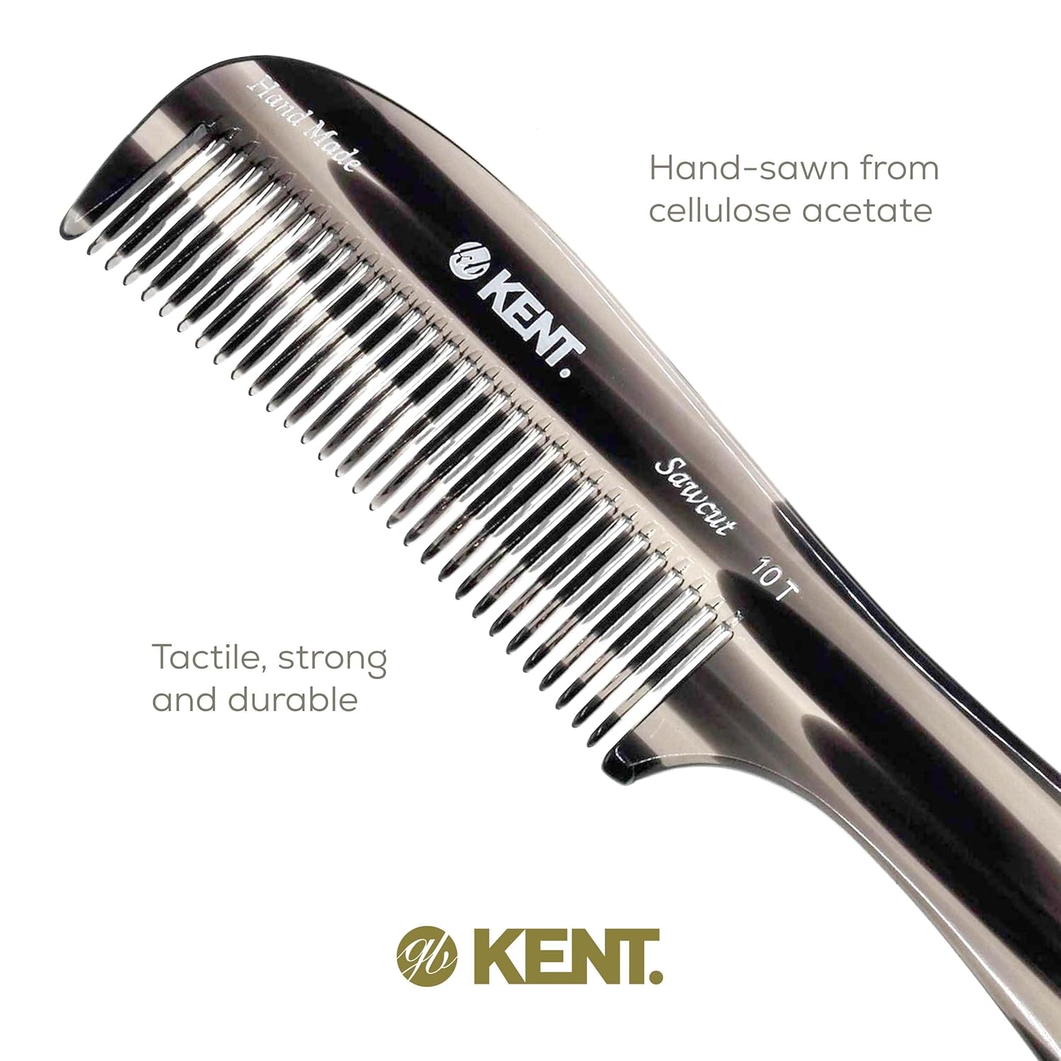 - Handmade Kent comb: Handmade from a large sheets of cellulose acetate rather than being molded. This material is tactile, flexible and strong, a non-petroleum based derived from plants that has been found to create less static in hair, and is saw-cut to ensure a smooth surface that will not pull or snag hair follicles